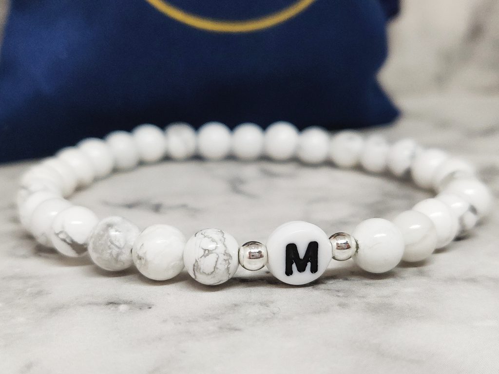 De edelstenen kralen van onze initialen armband zijn verbonden met een elastiek, die bestaat uit heel veel dunne elastieken waardoor het erg stevig zal zijn. Onze gepersonaliseerde armband bevat een platte letterkraal, dat afgestemd kan worden met elke initiaal die jij graag wil voor een unieke look.