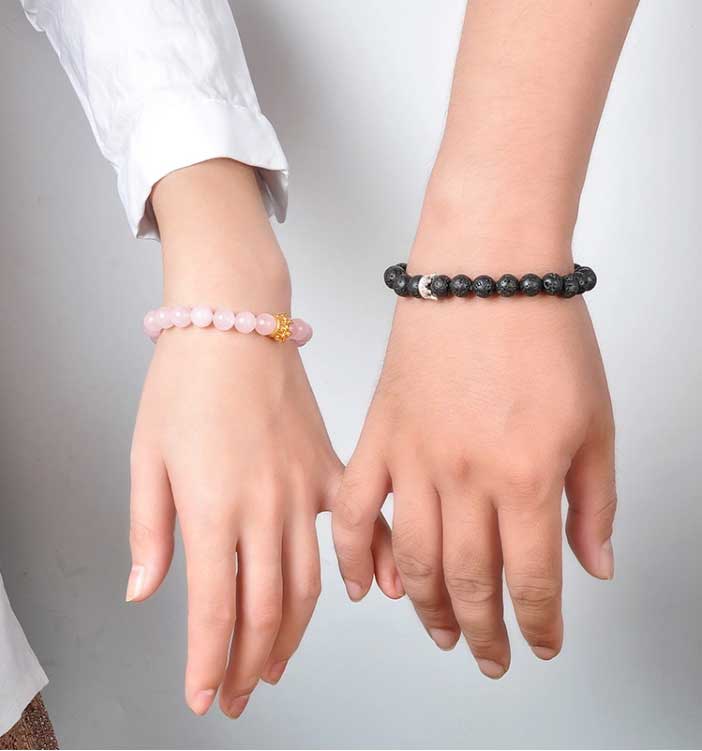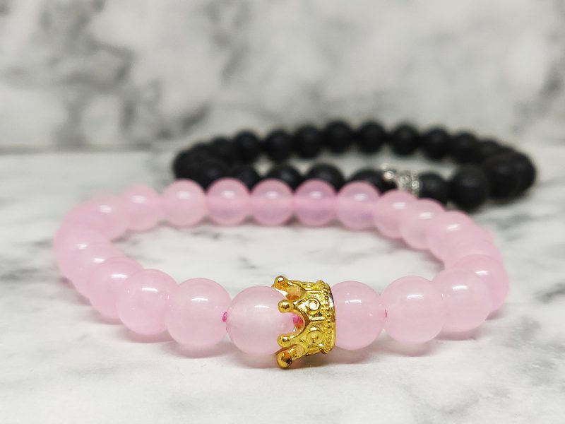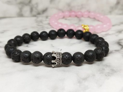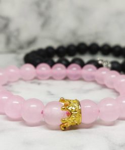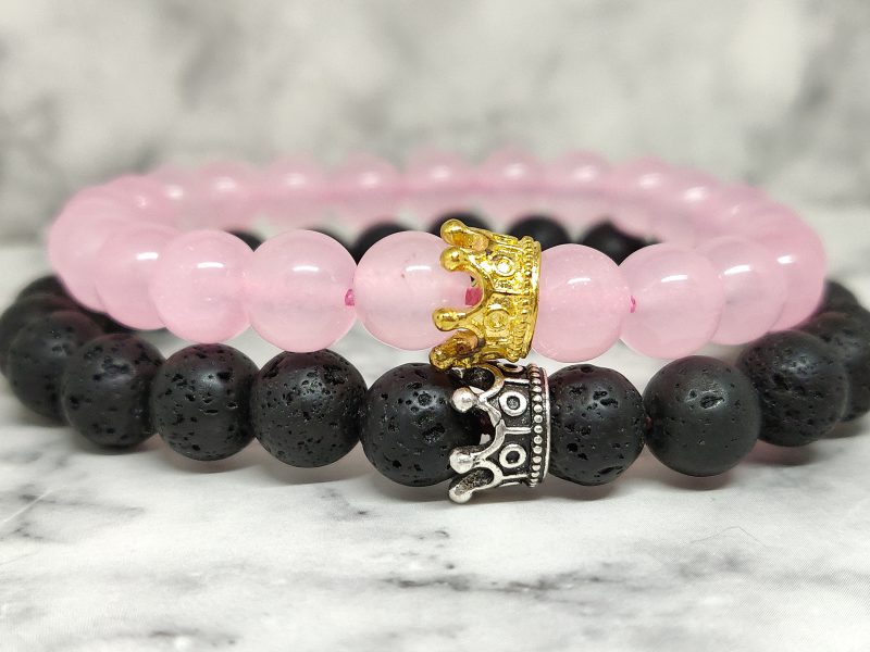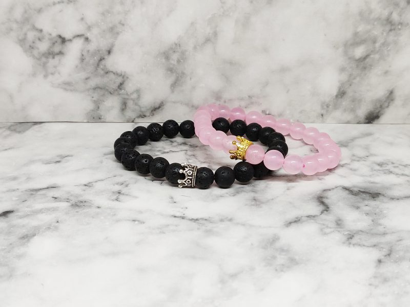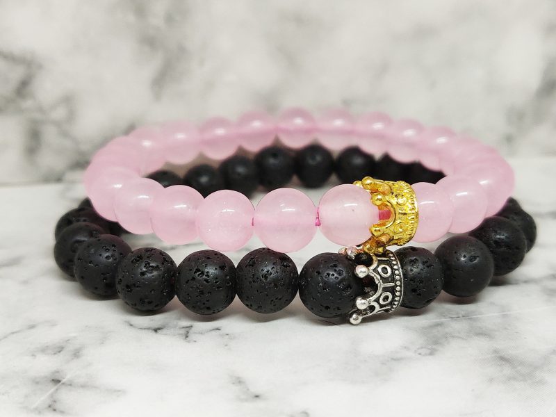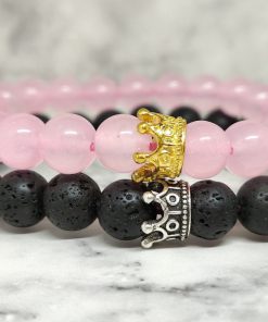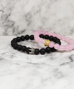 Een armbanden set, van Lavasteen en Rozenkwarts. Deze set is geschikt voor koppels