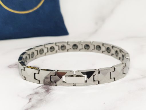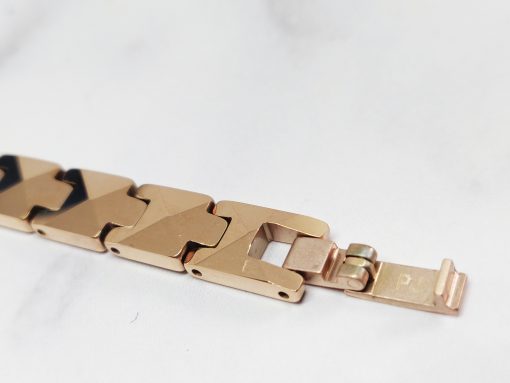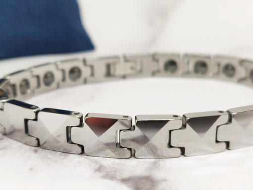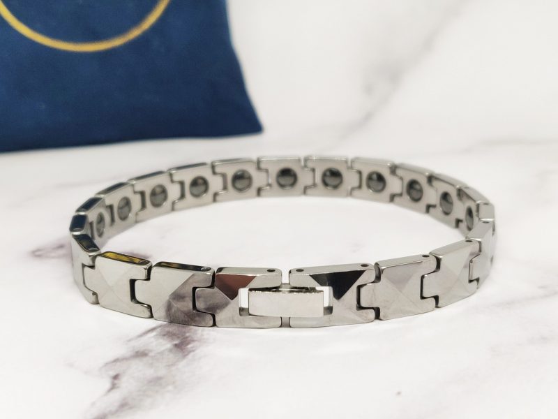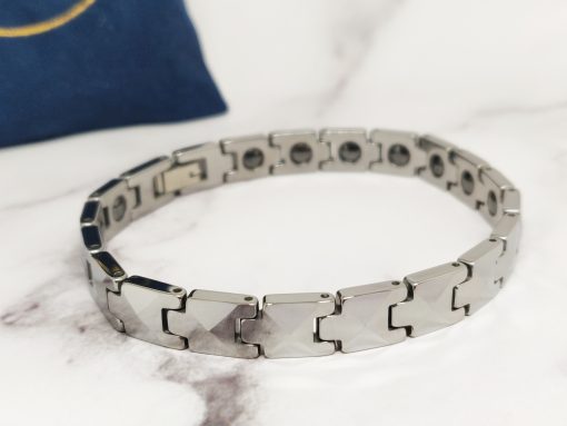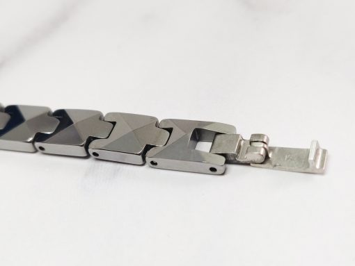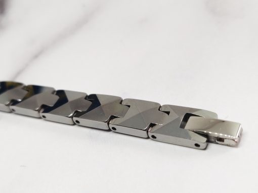 Een unieke armband voor dames en heren gemaakt van Tungsten ook wel wolfraam en hematiet aan de binnenkant van de armband. Je kan deze dragen met polsmaat 18 cm en kiezen uit roségoud of zilver. Deze armband kan je gemakkelijk om je pols doen door de vouwsluitng.