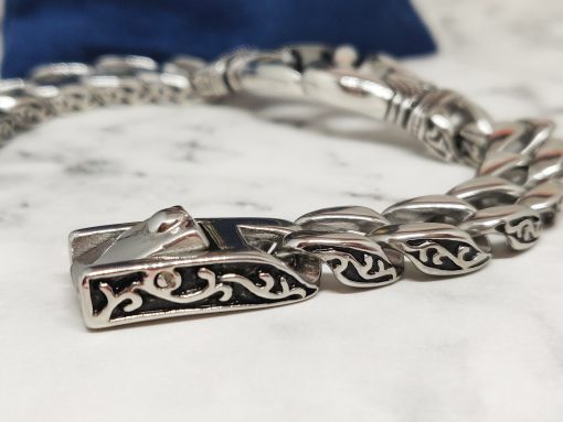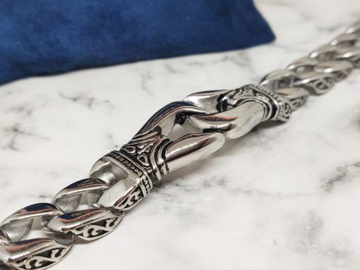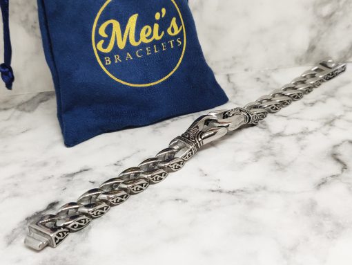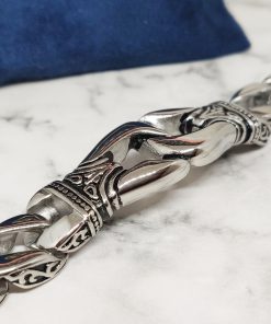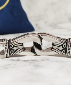 Een unieke Viking armband voor de echte fans van het oude Noorse kunst. Deze armband heeft een stevige constructie vanwege het sterke roestvrij staal ( 316L ), maar vormt zich soepel om jouw pols. Je kan de armband dragen met polsmaat 18cm of 20,5cm. Voor een lossere fitting is deze geschikt voor polsmaat 17,5cm of 20cm.