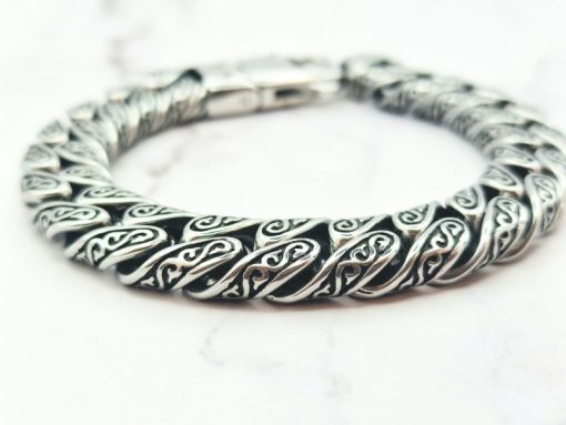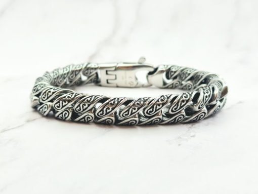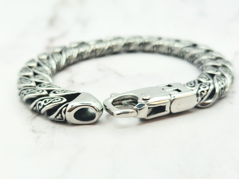 Roestvrij staal, ook wel bekend als chirurgisch staal, wordt niet dof en oxideert niet. Daarnaast is het hypoallergeen, dus geschikt voor alle huidtypen. Door deze ketting te dragen geeft het jou de kracht geeft die jij nodig hebt.  Met staal zit je altijd goed, en introduceer je je mannelijke kracht en macht bij je outfits.