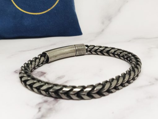 Roestvrij staal, ook wel bekend als chirurgisch staal, wordt niet dof en oxideert niet. Daarnaast is het hypoallergeen, dus geschikt voor alle huidtypen. Door deze armband te dragen geeft het jou de kracht geeft die jij nodig hebt. Met deze klassieke combi van edelsteen en staal zit je altijd goed, en introduceer je je mannelijke kracht en macht bij je outfits.