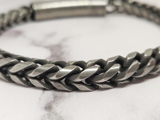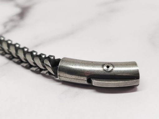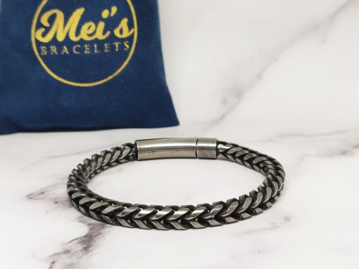 Een stoere biker armband voor mannen gemaakt van Stainless Steel. Je kan deze dragen met polsmaat 17,5 en 18 cm. Daarnaast is het gemakkelijk om je pols te doen door de sluiting vast te klikken.