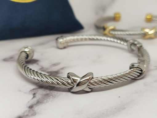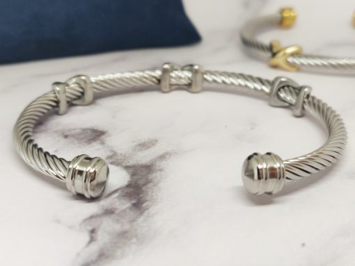 Een mooie bangle voor dames van roestvrij staal 316L. Deze armband past bij een polsmaat van 15,5-18 cm en is gemakkelijk om de pols te doen.