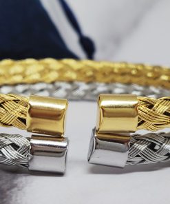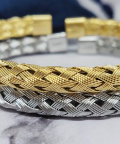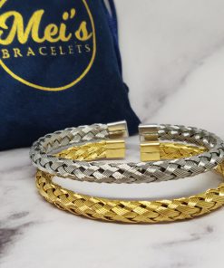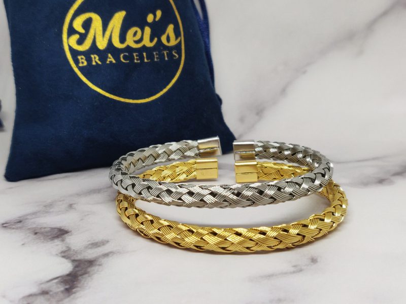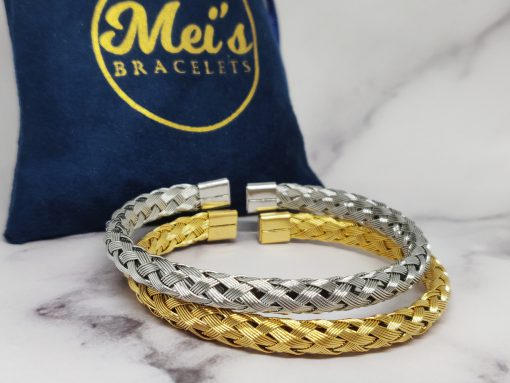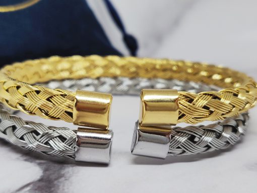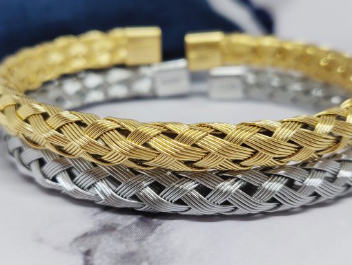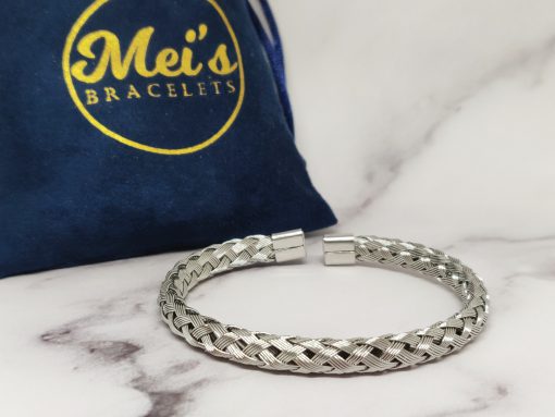 Een mooie gevlochten bangle voor dames en mannen van roestvrij staal 316L. Deze armband past bij een polsmaat van 16,5-21 cm en is gemakkelijk om de pols te doen.