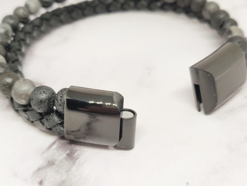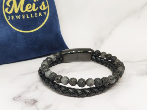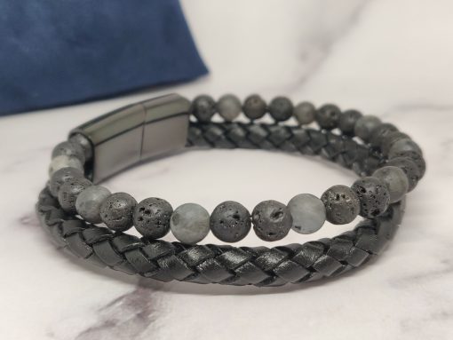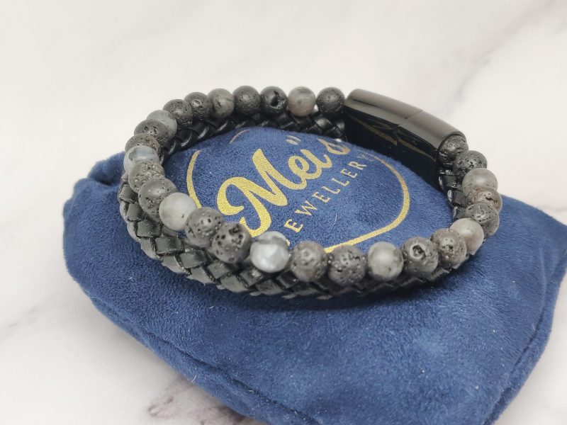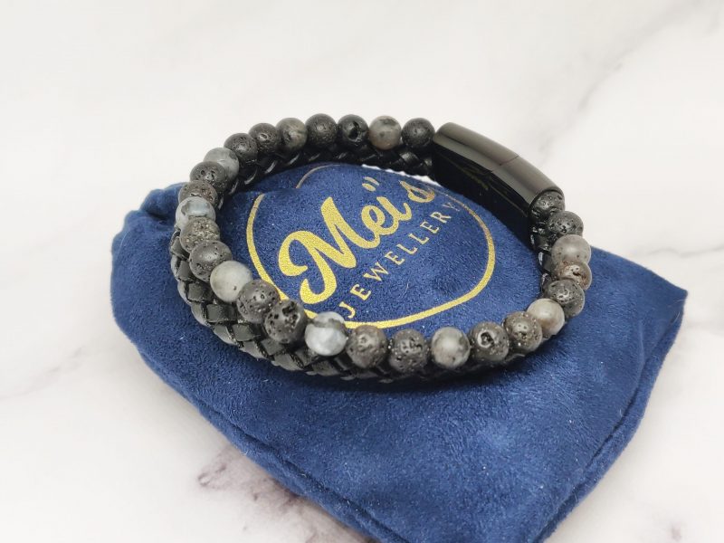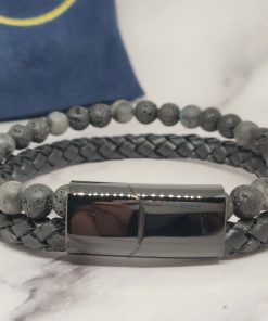 Een stoere armband voor mannen gemaakt van edelsteen, leer en Stainless Steel. Deze armband kan je dragen met polsmaat 17,5 cm & 19 cm en is gemakkelijk om de pols te doen. Naast dat de armband bij elke outfit past heeft de armband ook een speciale betekenis.