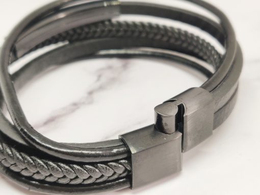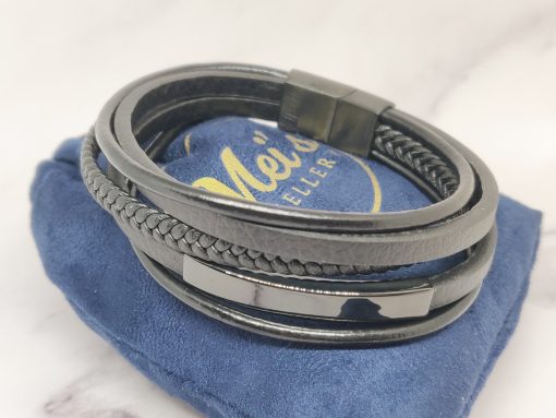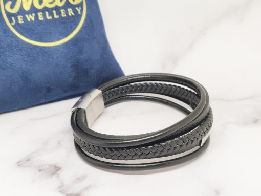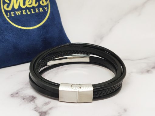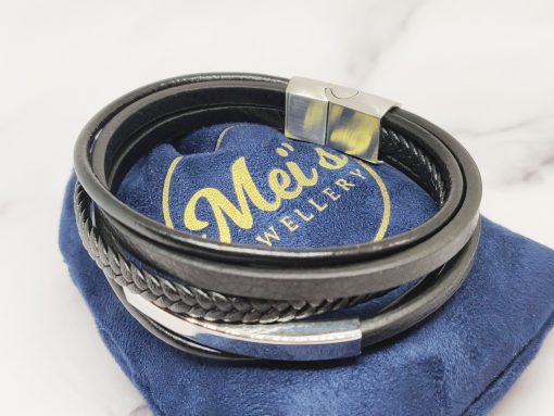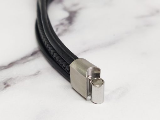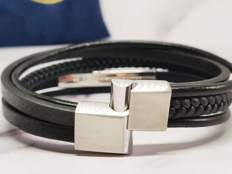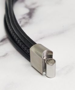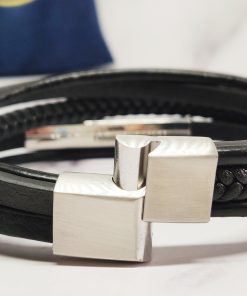 Een stoere armband voor mannen gemaakt van echt leer en Stainless Steel. Deze armband kan je dragen met polsmaat 18 cm & 19,5 cm en is gemakkelijk om de pols te doen. Je kan de armband ook goed combineren bij elke outfit.