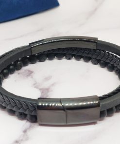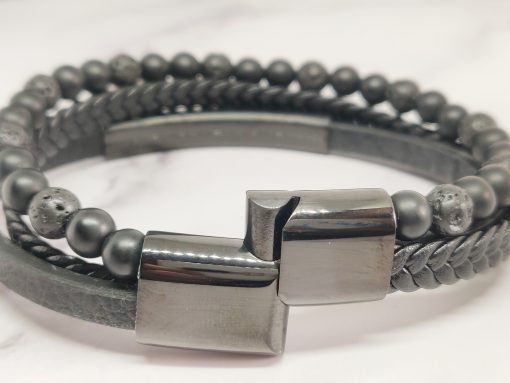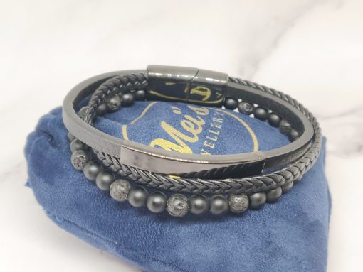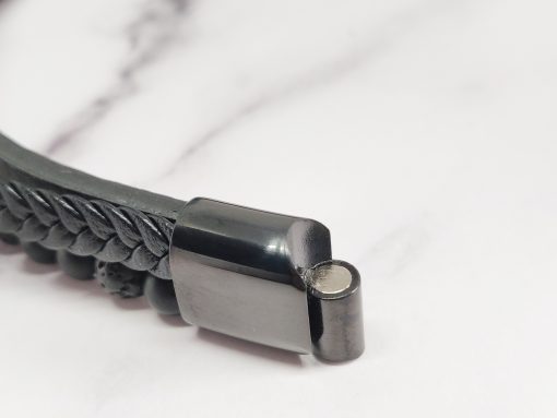 Een stoere armband voor mannen gemaakt van edelsteen, leer en Stainless Steel. Deze armband kan je dragen met polsmaat 18 cm & 19,5 cm en is gemakkelijk om de pols te doen. Naast dat de armband bij elke outfit past heeft de armband ook een speciale betekenis.