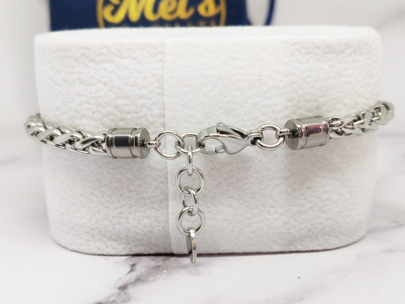 Roestvrij staal, ook wel bekend als chirurgisch staal, wordt niet dof en oxideert niet. Daarnaast is het hypoallergeen, dus geschikt voor alle huidtypen.