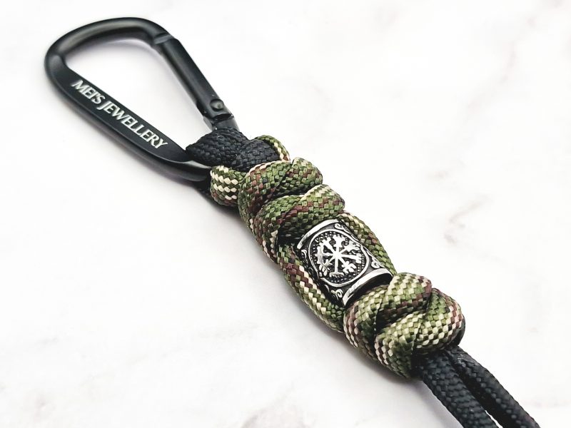 Mei’s Handmade sleutelhanger | Nordic Cord – Vegvisir | Paracord – Aluminium | zwart – groen – zilver