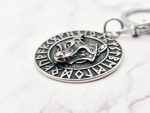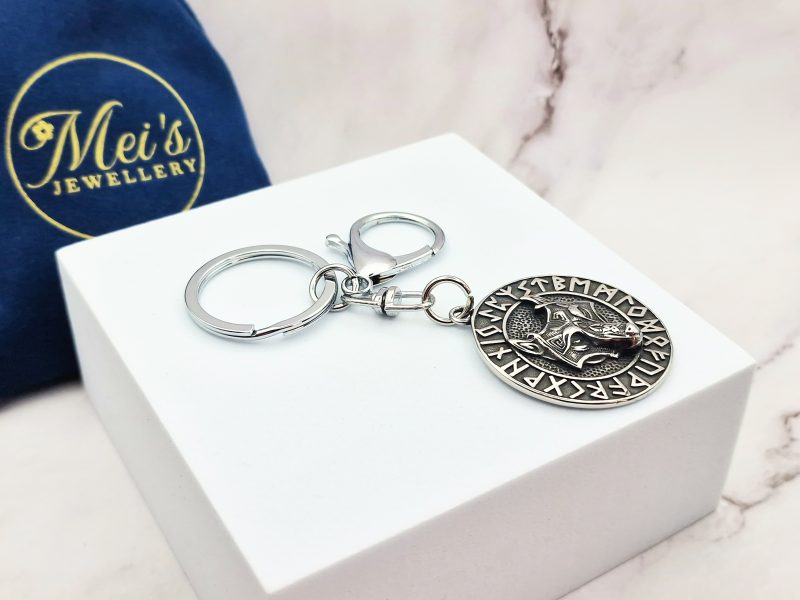 Een stoere sleutelhanger met het runenschrift en een wolf. Gemaakt van 316L roestvrij staal (RVS), staat deze sleutelhanger niet alleen voor duurzaamheid, maar heeft ook zijn eigen betekenis. Door deze sleutelhanger aan je sleutels te hangen maak je ze niet alleen herkenbaar, maar ook betekenisvol.