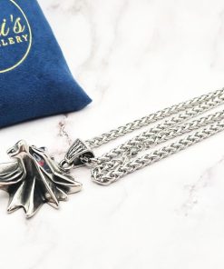 Een stoere ketting met een wolvenhoofd van een populaire tv-serie. Het is makkelijk om te doen doormiddel van de kreeftklauwsluiting. Deze ketting is helemaal van 316L roestvrij staal (RVS) oftewel Stainless Steel en is verkrijgbaar in maat 50 cm & 70 cm