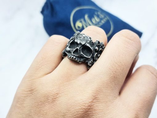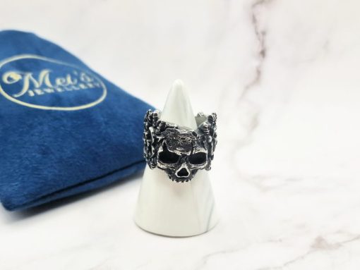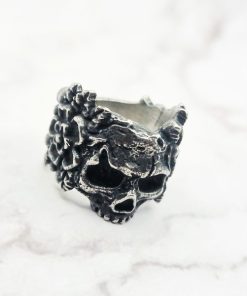 Een gedurfde en unieke ring wat een echte must-have is voor elke punkliefhebber. Met een stoere schedel als blikvanger en sierlijke bloemen aan de zijkanten, heeft deze een verrassende uitstraling. Verkrijgbaar in de ringmaat 55 mm, 60 mm en 65 mm. Gemaakt van hoogwaardig roestvrij staal 316L, zo is deze ring niet alleen een tijdloos statement, maar ook duurzaam. De combinatie van stoer en subtiel maakt dit sieraad een perfecte weerspiegeling van de punkmentaliteit. Draag deze ring met trots en laat zien dat jouw stijl net zo onverwoestbaar is als je geest!