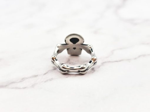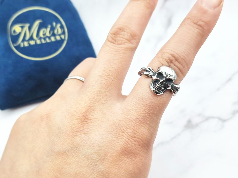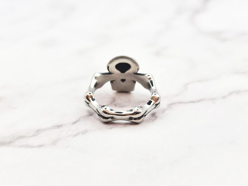 Gemaakt van hoogwaardig roestvrij staal 316L is deze ring niet alleen een krachtig statement, maar ook uitzonderlijk duurzaam. De combinatie van ruige uitstraling en diepere symboliek maakt dit sieraad de perfecte belichaming van de punkmentaliteit.