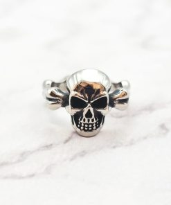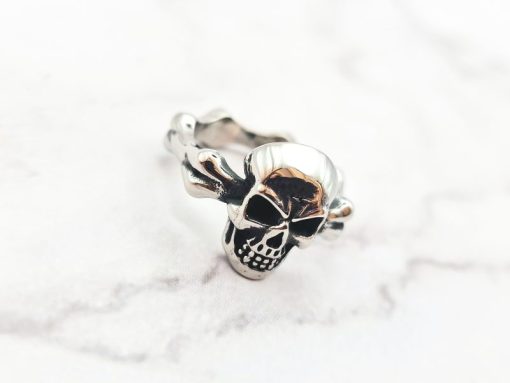 Deze stoere en unieke ring is een absolute must-have voor elke punkliefhebber. Met een opvallende schedel als blikvanger staat dit sieraad symbool voor vrijheid en rebellie. Verkrijgbaar in ringmaten 55 mm, 60 mm en 65 mm.