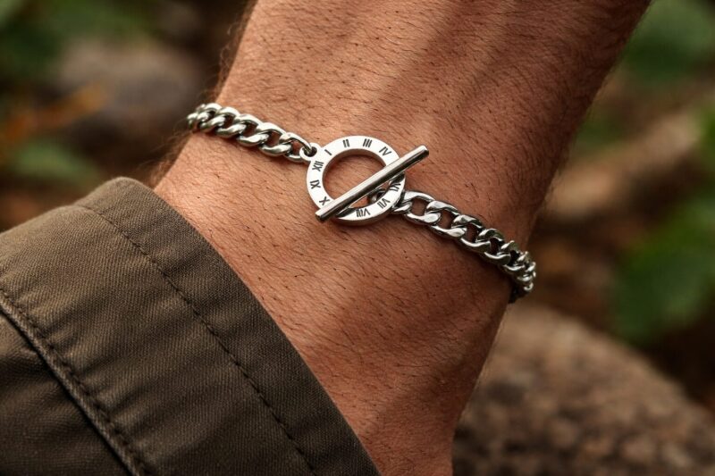 Een prachtige armband met de perfecte balans tussen stoer en minimalistisch voor mannen. Met zijn verfijnde ontwerp trekt deze armband de aandacht met de Romeinse cijfers als opvallend element. Elk cijfer is zorgvuldig gegraveerd op de duurzame roestvrij stalen band, waardoor een tijdloos en klassiek effect ontstaat.