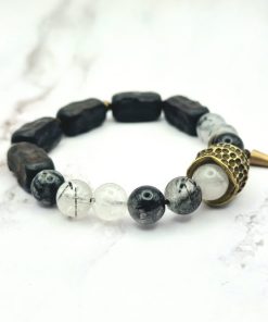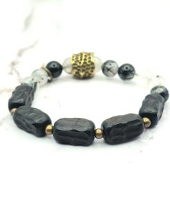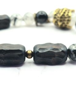 Zwarte Rutielkwarts staat ook wel bekend als Rookkwarts met Rutiel, dit is een variant van kwarts met karakteristieke lijnen van Rutiel. Deze steen wordt geassocieerd met de wortelchakra en de zonnevlechtchakra en wordt verondersteld kracht en energie te geven aan de drager, evenals bescherming tegen negatieve energieën. Het kan ook worden gebruikt om het immuunsysteem te versterken en om te helpen bij het loslaten van negatieve emoties en het verminderen van stress en angst.
