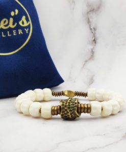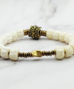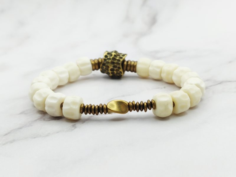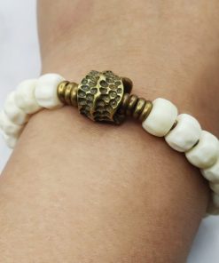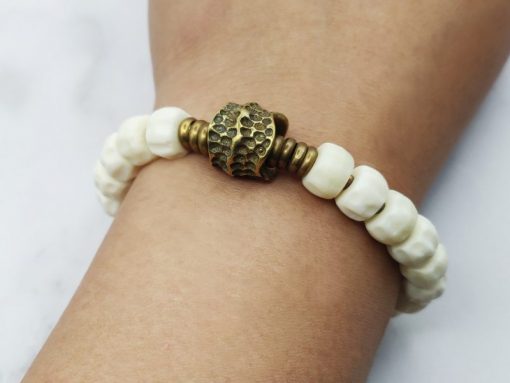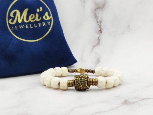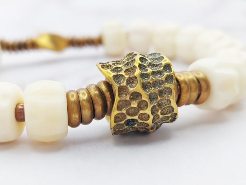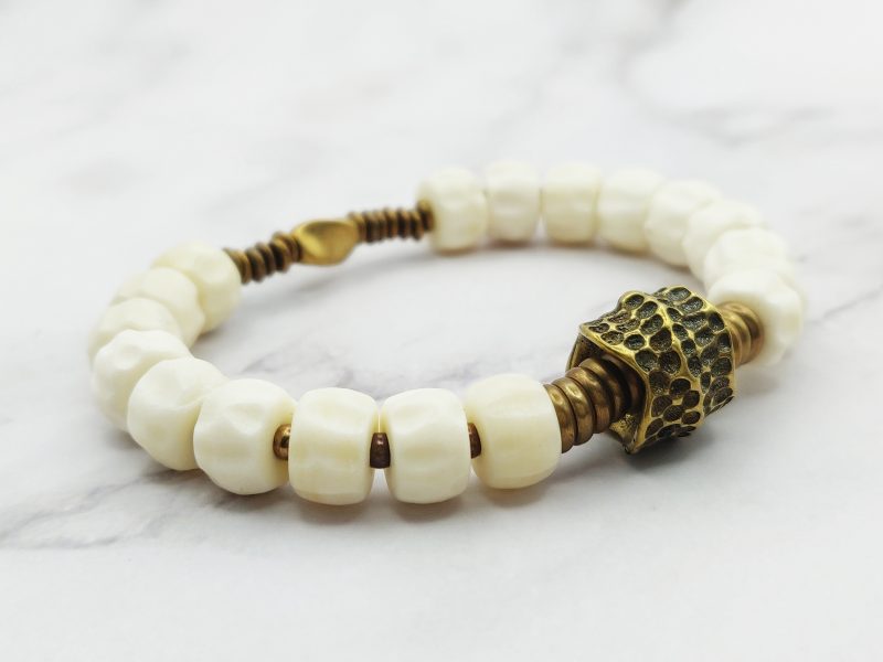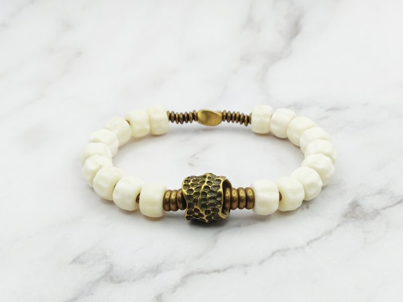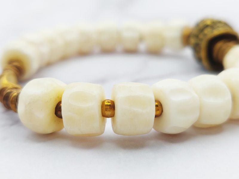 Mei’s Tibetan armband | Coppery Bone | Yakbot – Koper | wit – goud