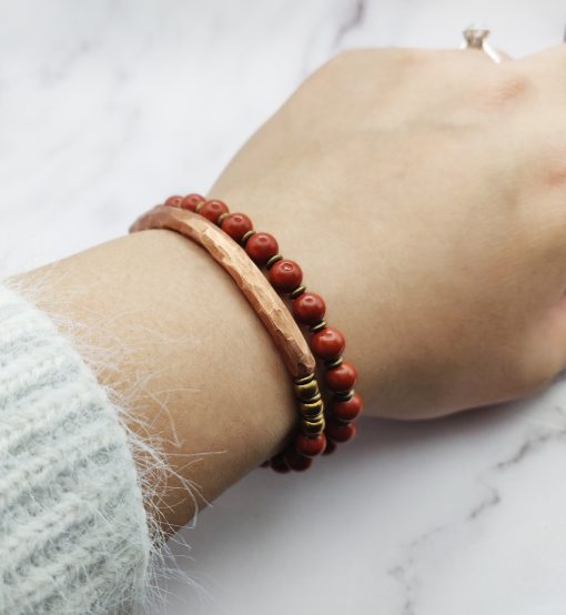 Rode Jaspis kan je helpen je uithoudingsvermogen te vergroten. De steen kan je helpen om over loop van tijd je levenskracht in je energieveld toe te laten nemen. Daarnaast versterkt de steen je geheugen. Rode jaspis is een steen van fysieke kracht en energie. Het is zeer heilzaam voor mensen die extra ondersteuning nodig hebben om te herstellen van lichamelijke zwakte door ziekte. Verder kan je het gebruiken om lichaamstraining meer effect te geven en als ondersteuning voor het bloedvaten- en ademhalingsstelsel.