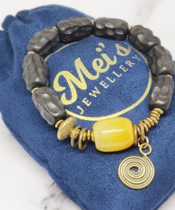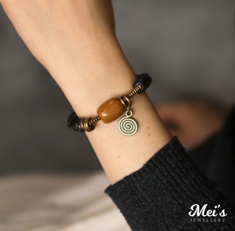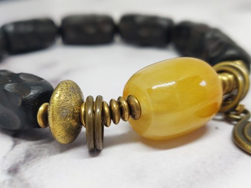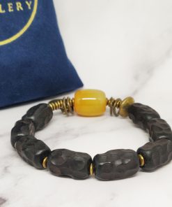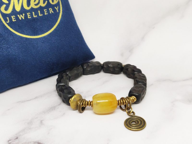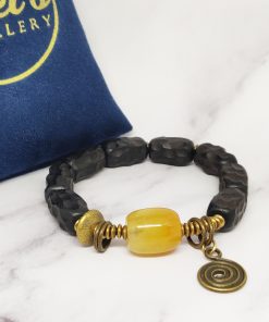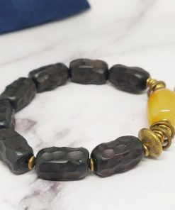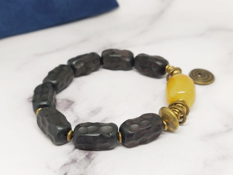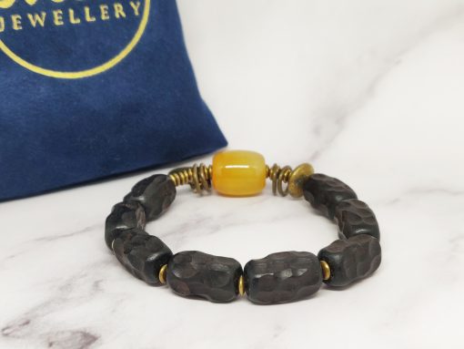 Een mooie armband voor vrouwen gemaakt van ebbenhout, edelsteen en koper. Deze armband kan je dragen met polsmaat 15,5 cm en 17 cm, en is gemakkelijk om de pols te doen. Daarnaast past de armband bij elke outfit.
