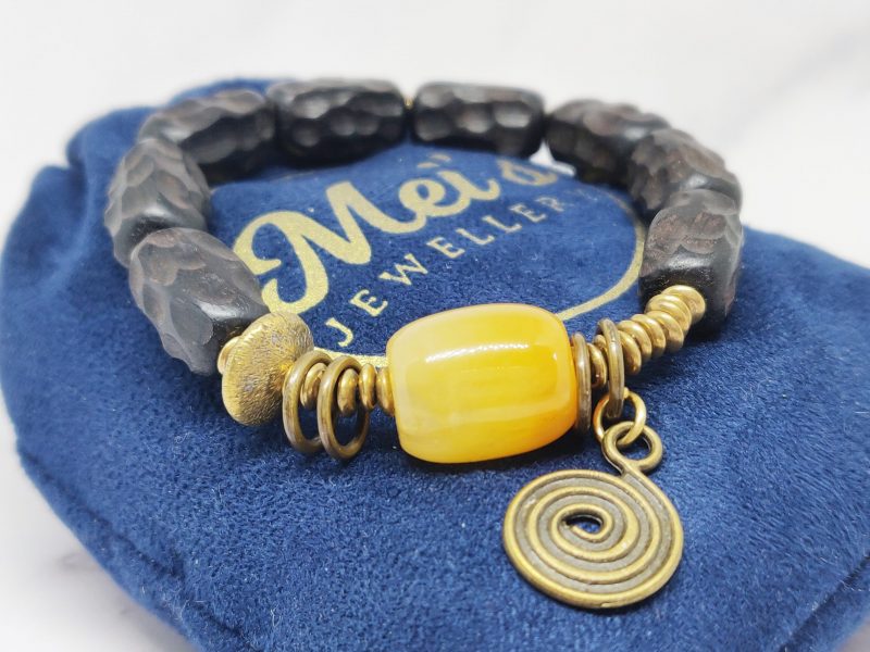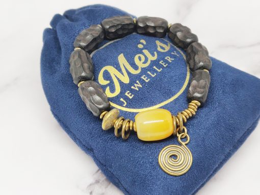 Mei’s Tibetan armband | Ebony Copper | Hout | geel – zwart – koper