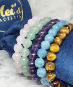 Een speciale set armbanden voor vrouwen gemaakt van edelsteen en koper. Deze armbanden kan je dragen met polsmaat 16 cm & 17,5 cm en is gemakkelijk om de pols te doen. Naast dat de armband als set bij elke outfit past heeft de armband ook een speciale betekenis. Daarnaast kan je de armbanden ook nog eens individueel dragen.