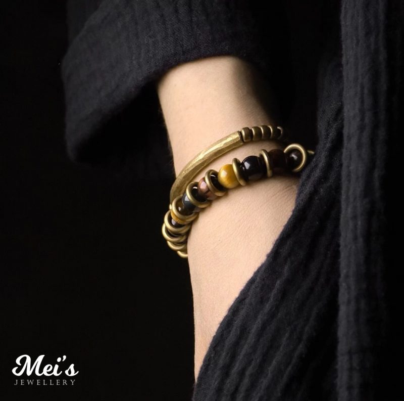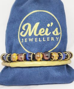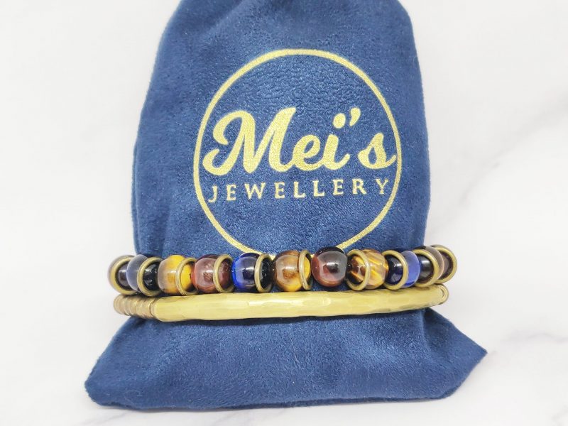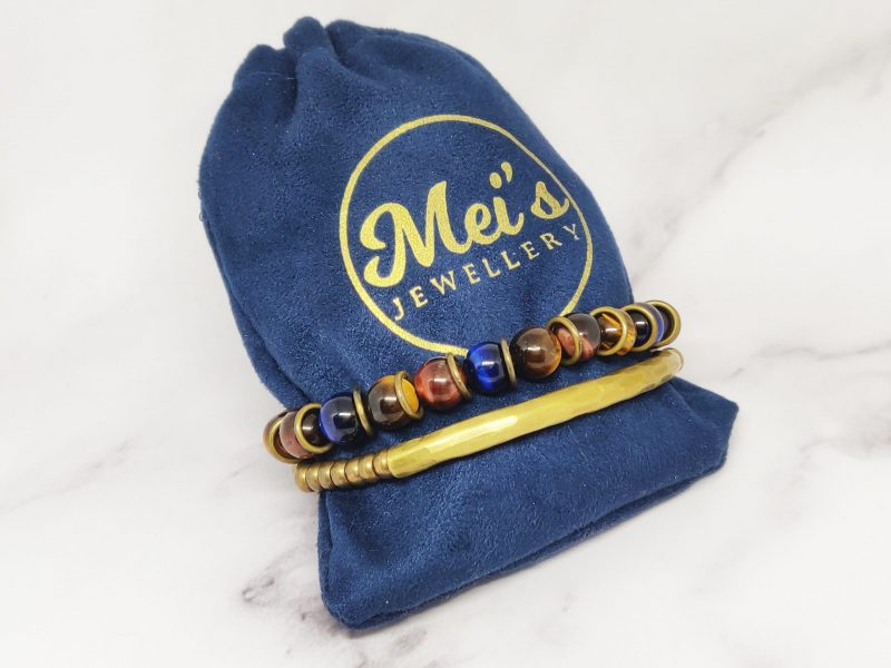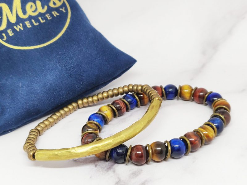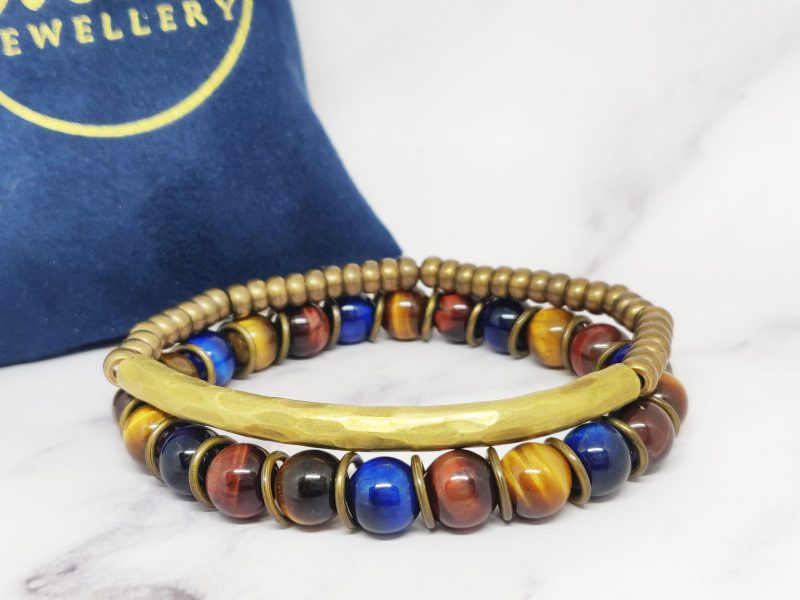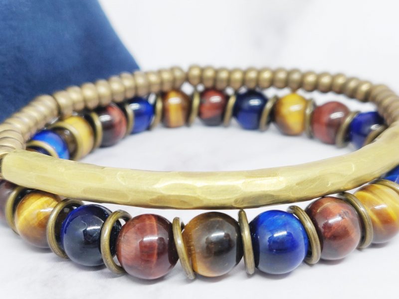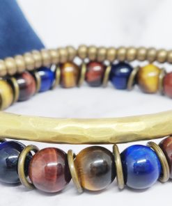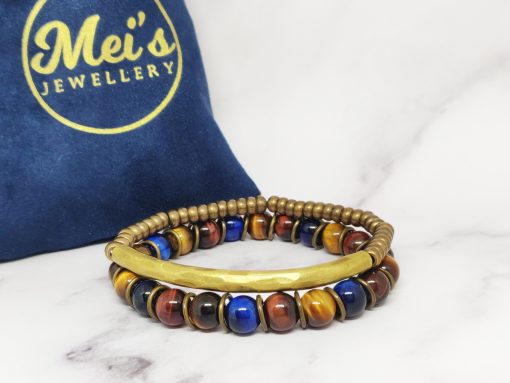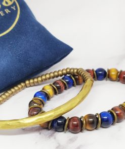 Mei’s Tibetan armband | Tibetan Tiger | Edelsteen | bruin – blauw – goud