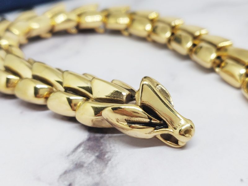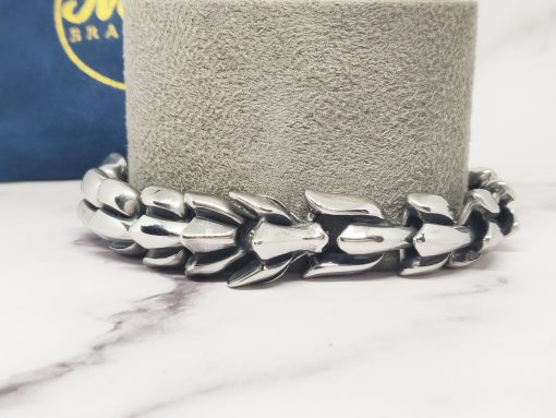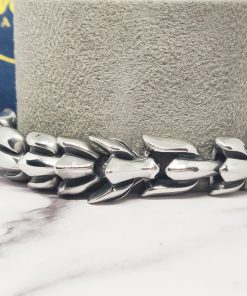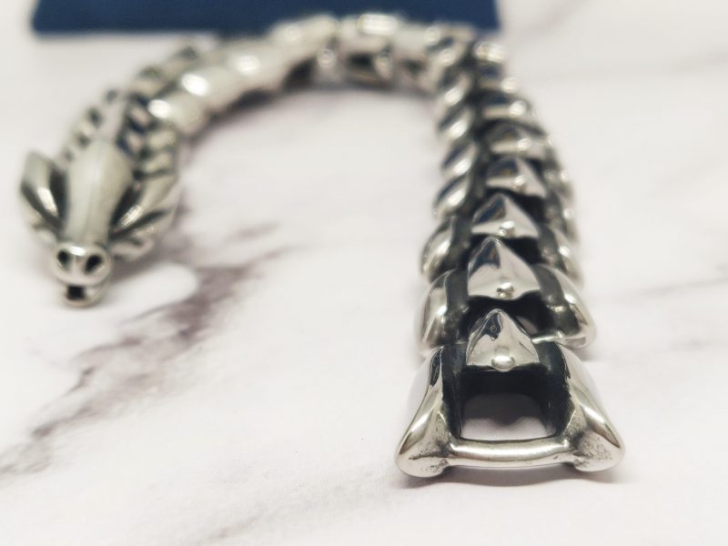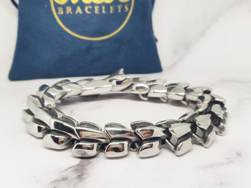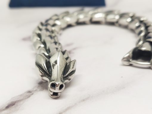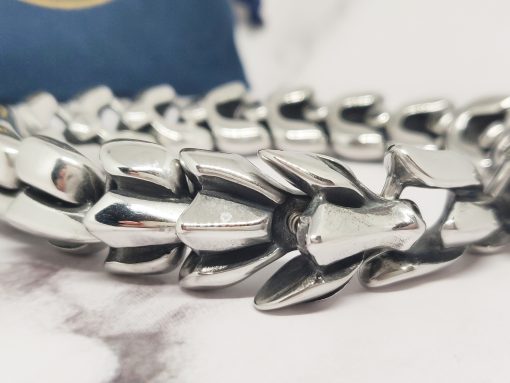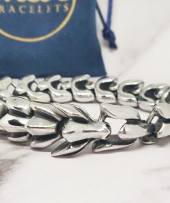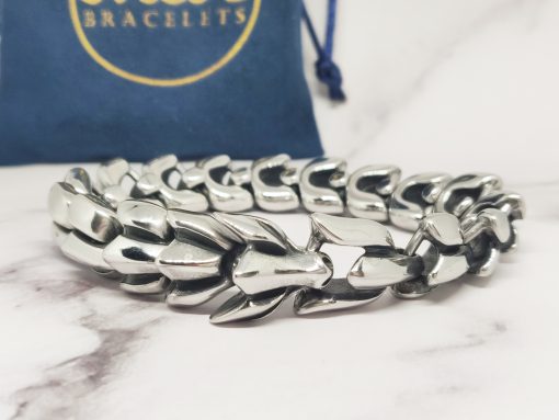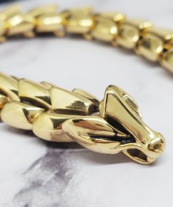Een unieke en solide stuk Viking armband voor de echte fans van het oude Noorse kunst. Je kan deze armband dragen met polsmaat 16 cm, 18 cm & 20 cm en in de kleuren zilver & goud. Als je van een lossere fitting houdt kan je het gemakkelijk met 0,5 cm maat kleiner dragen. Het is gemakkelijk de armband om de pols te doen, je hoeft alleen maar de bek van de draak open te doen. Daarnaast heeft deze armband een sterke constructie vanwege het roestvrij staal.