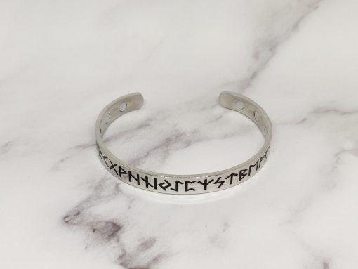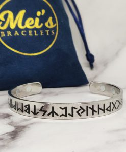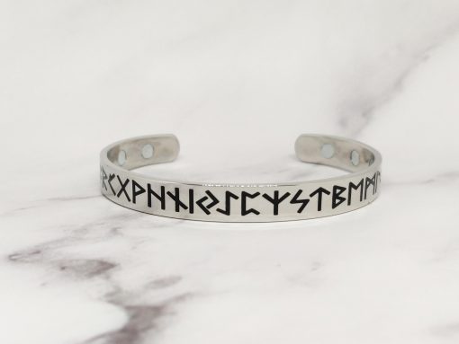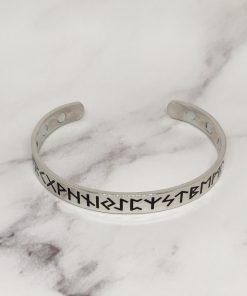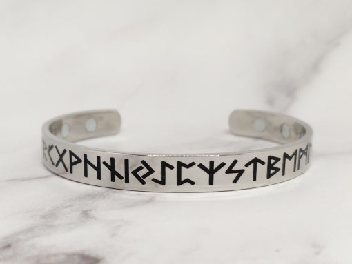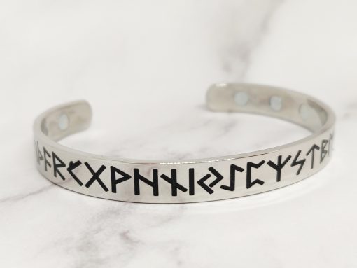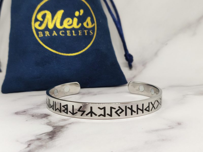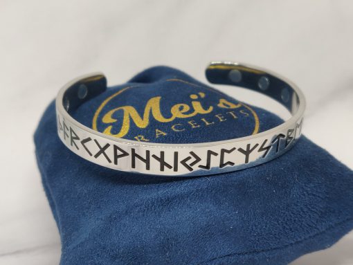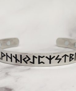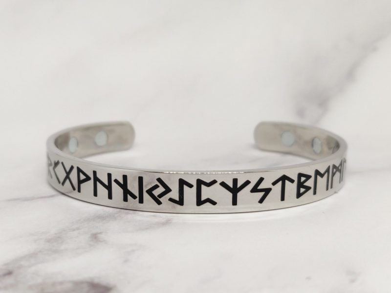 Het meest sentimentele stuk Viking sieraad, deze armband bevat het runenschrift en is van roestvrij staal 316L gemaakt. Deze manchet armband past bij een polsmaat van 15,5-19,5 cm en is te verstellen met een beetje kracht. Daarnaast is Script of Runes 8 mm breed en bevat het in totaal 6 magneten.