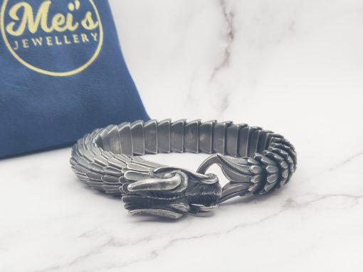 Een unieke Viking armband voor de echte fans van het oude Noorse kunst. Je kan deze armband dragen met polsmaat 18 cm en 20 cm. Het is gemakkelijk de armband om de pols te doen, je hoeft alleen maar op de drakenkop te duwen. Daarnaast heeft deze armband een sterke constructie vanwege het roestvrij staal.