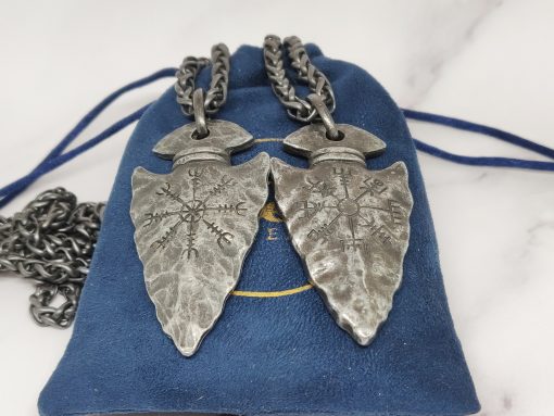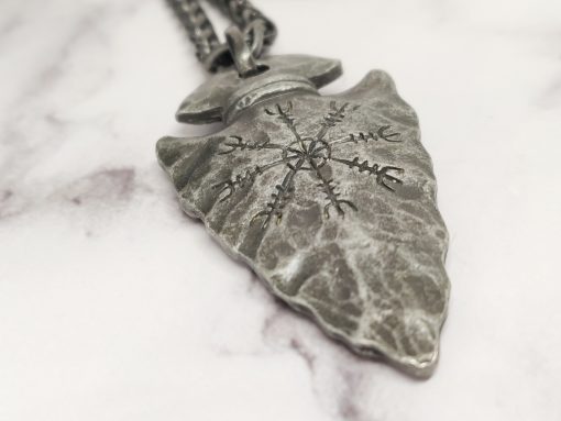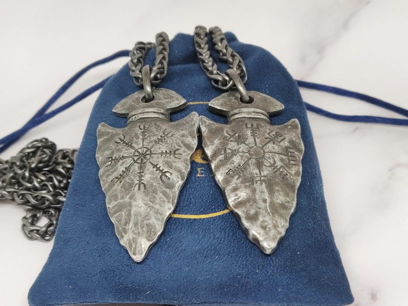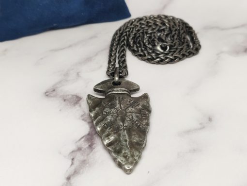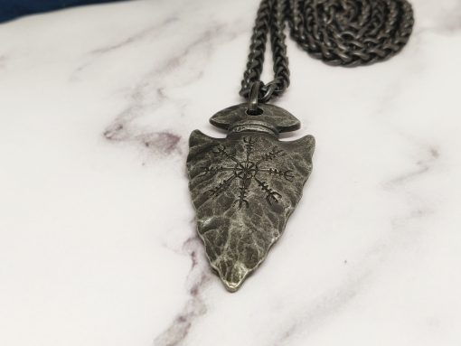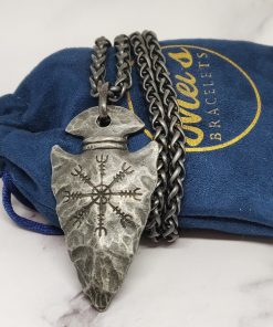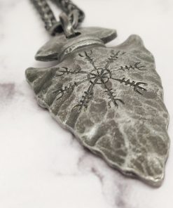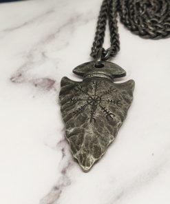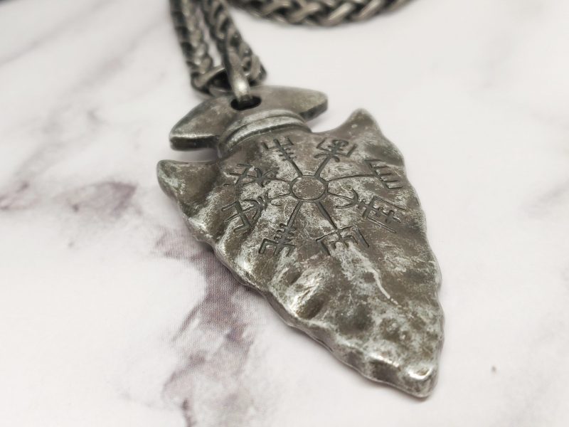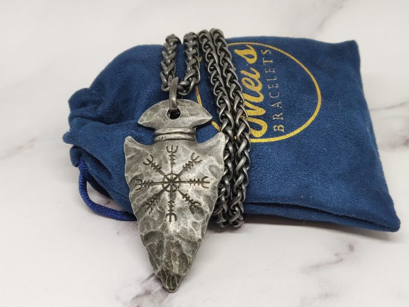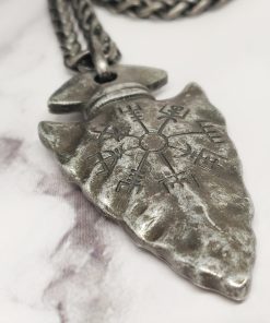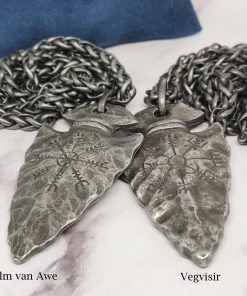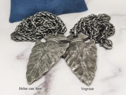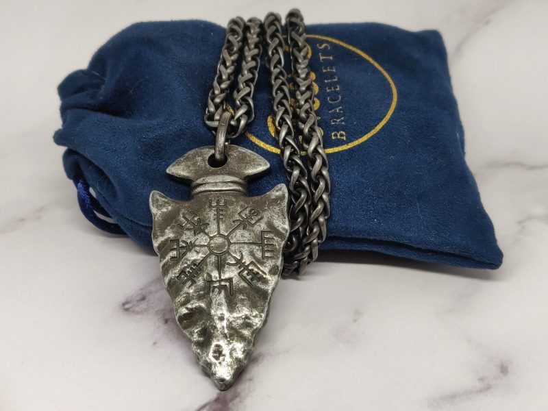 Een stoere, tijdloze en duurzame ketting met een symbool uit de Oud-Noorse tijd. Deze antieke viking kettingen zijn allebei van roestvrijstaal, ook wel 316L of Stainless Steel. Elke ketting heeft een eigen symbool op de pijl, je kan kiezen uit Vegvisir of Helm of Awe. De ketting kan je gemakkelijk om de nek doen met maat 50 cm & 70 cm en doormiddel van de kreeftklauwsluiting.