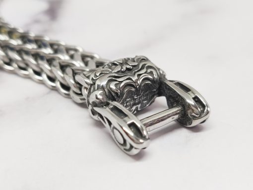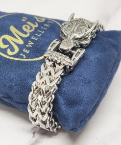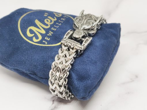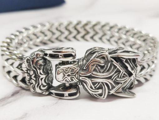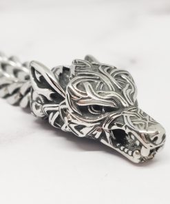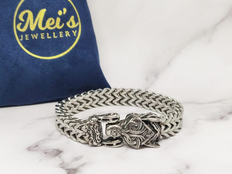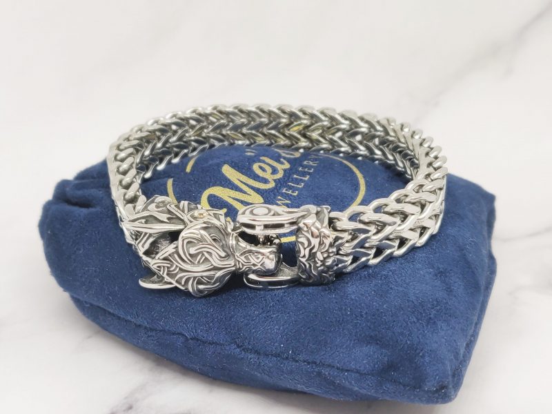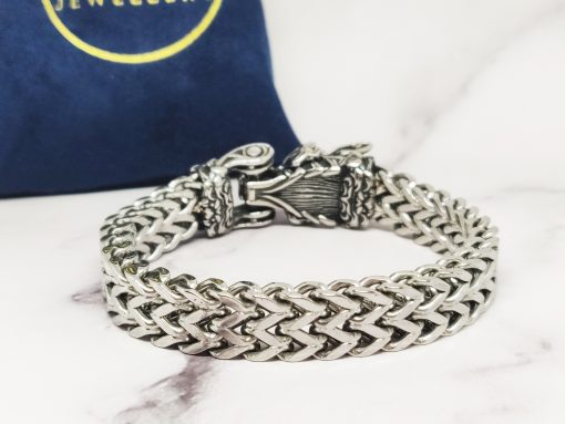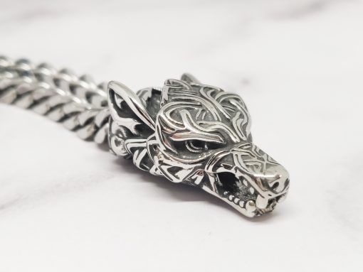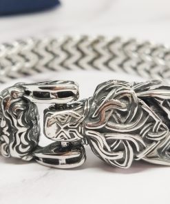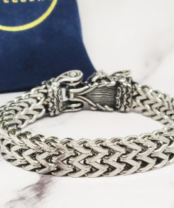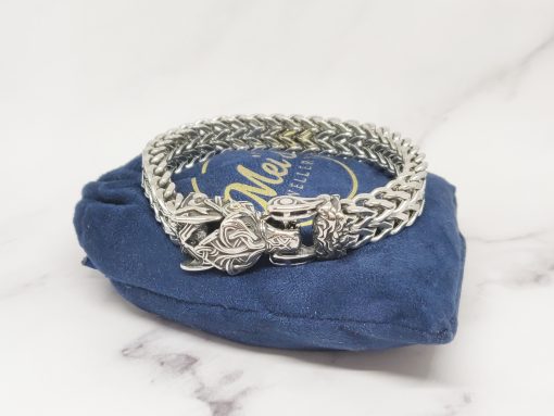 Een unieke Viking armband voor de echte fans van het oude Noorse kunst. Je kan deze armband dragen met polsmaat 17 cm & 19 cm. Als je van een lossere fitting houdt kan je het gemakkelijk met 0,5 cm maat kleiner dragen. Het is gemakkelijk de armband om de pols te doen, je hoeft alleen maar de bek van de wolf open te doen. Daarnaast heeft deze armband een sterke constructie vanwege het roestvrij staal.