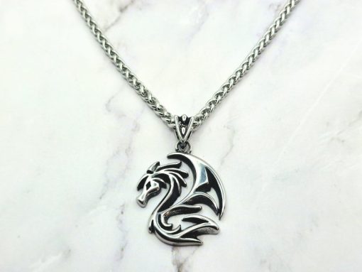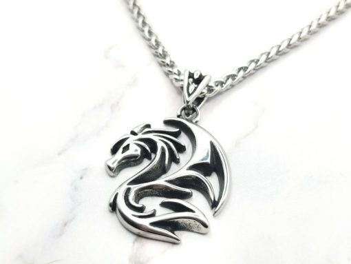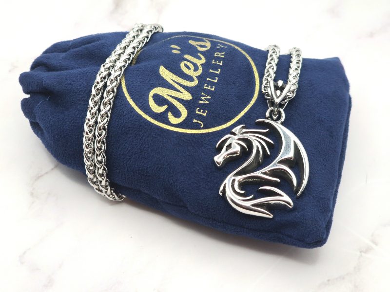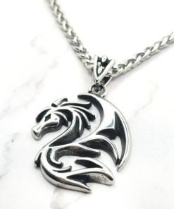 Een stoere en tijdloze Viking ketting met een draak is geïnspireerd op de Oud-Noorse tijd. Gemaakt van roestvrij staal, ook wel bekend als 316L of Stainless Steel. De ketting kan gemakkelijk om de nek worden gedaan met behulp van de kreeftklauwsluiting en is verkrijgbaar in maat 50 en 70 cm.