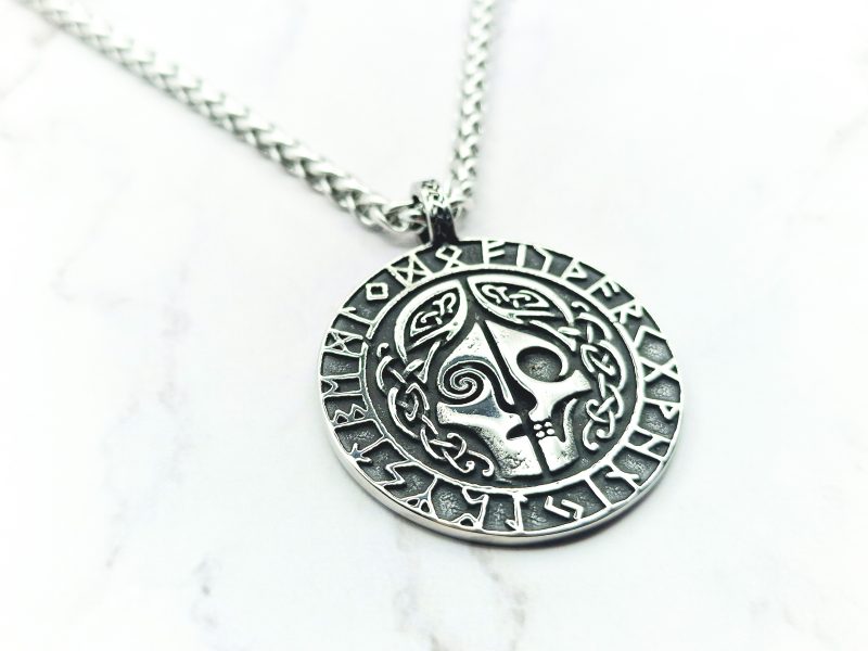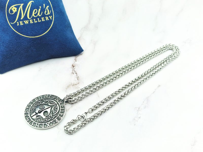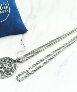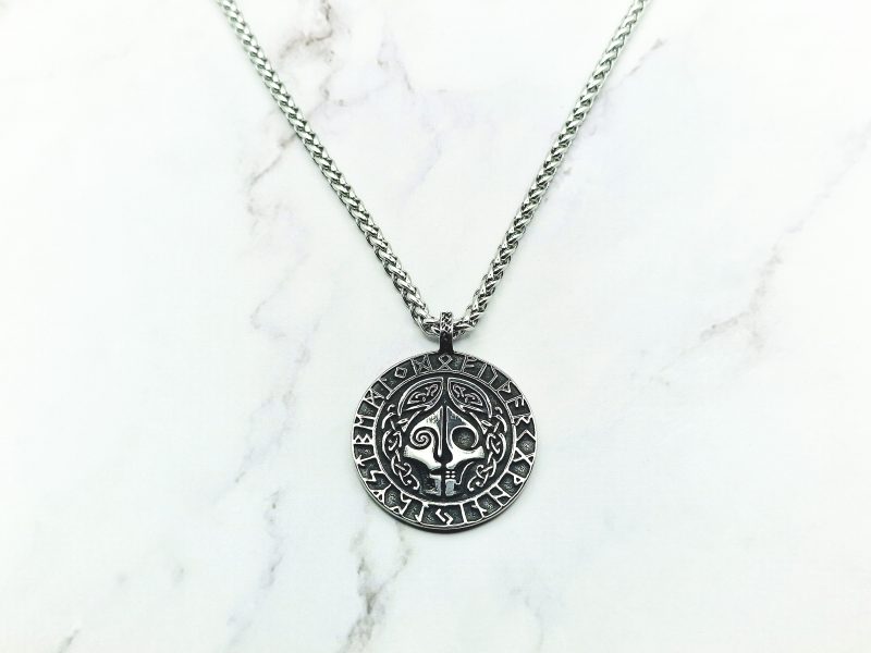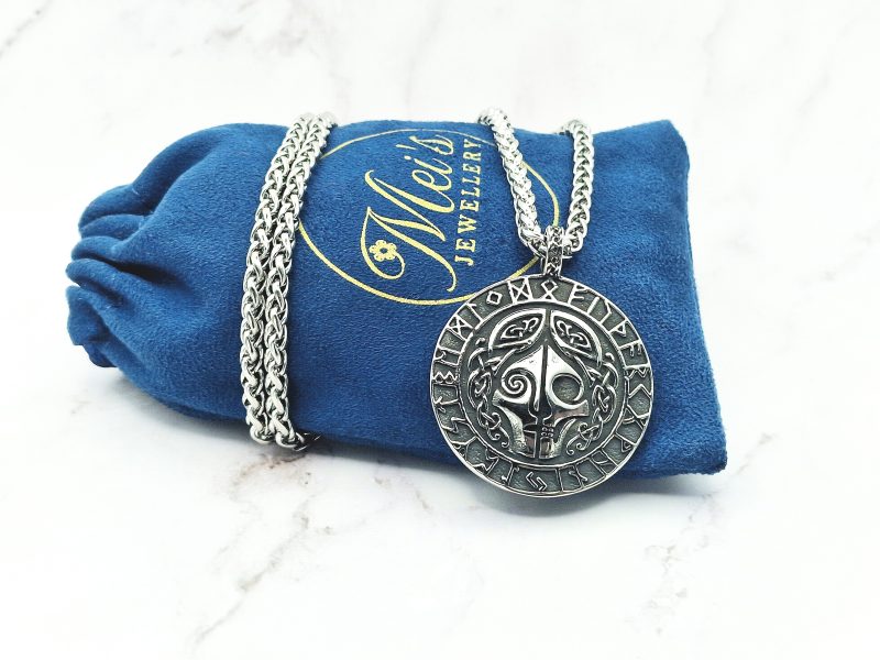 Een unieke ketting met symbolen uit de Viking tijd. Deze betekenisvolle ketting is vervaardigd uit hoogwaardige roestvrij staal en kan heeft maat 60 cm. De ketting kan je gemakkelijk om de nek doen doormiddel van de kreeftklauwsluiting.