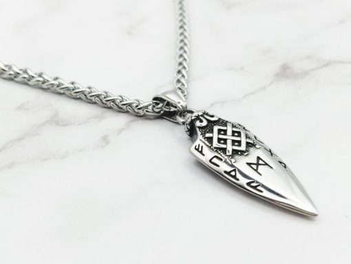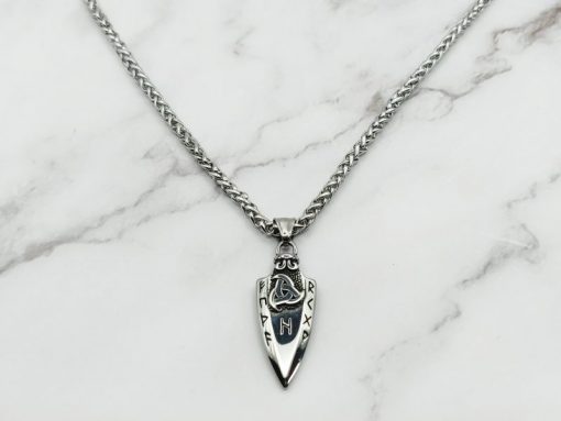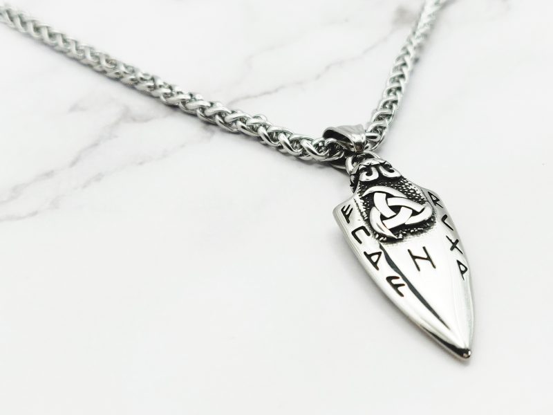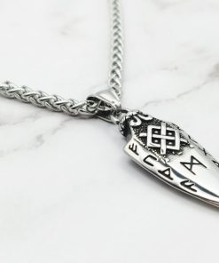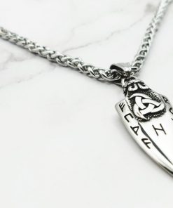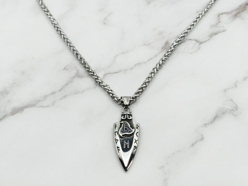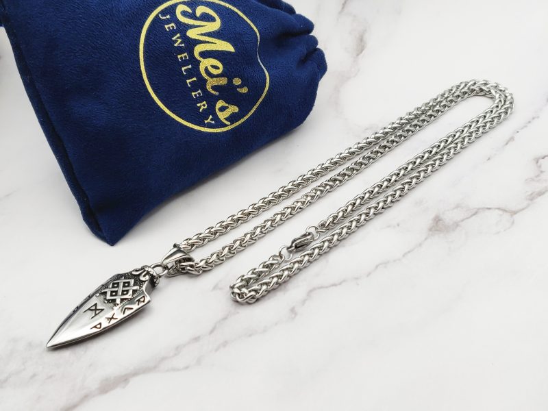 Een stoere en toch minimalistische ketting met symbolen uit de Oud-Noorse tijd. Deze ketting is volledig van 316L Roestvrij staal, ook wel Stainless Steel gemaakt. Je kan deze ketting dragen met maat 60 cm en makkelijk om de nek doen doormiddel van de kreeftklauw-sluiting.