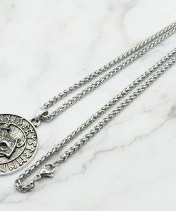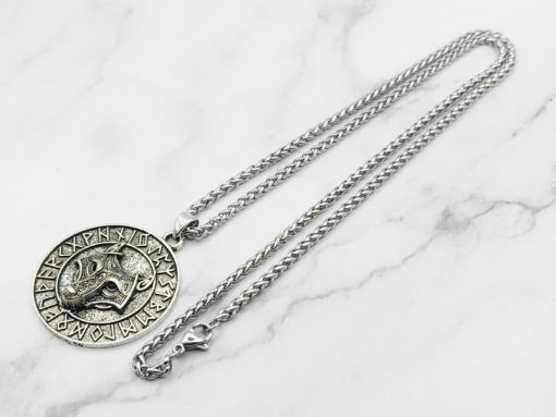 Een stoere, tijdloze en duurzame ketting met symbolen uit de Oud-Noordse tijd. Deze ketting is volledig van 316L Roestvrij staal, ook wel Stainless Steel gemaakt. Je kan deze ketting dragen met maat 60 cm en makkelijk om je nek doen doormiddel van de kreeftklauw-sluiting.
