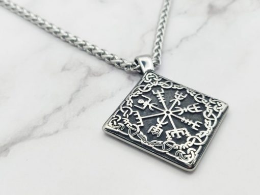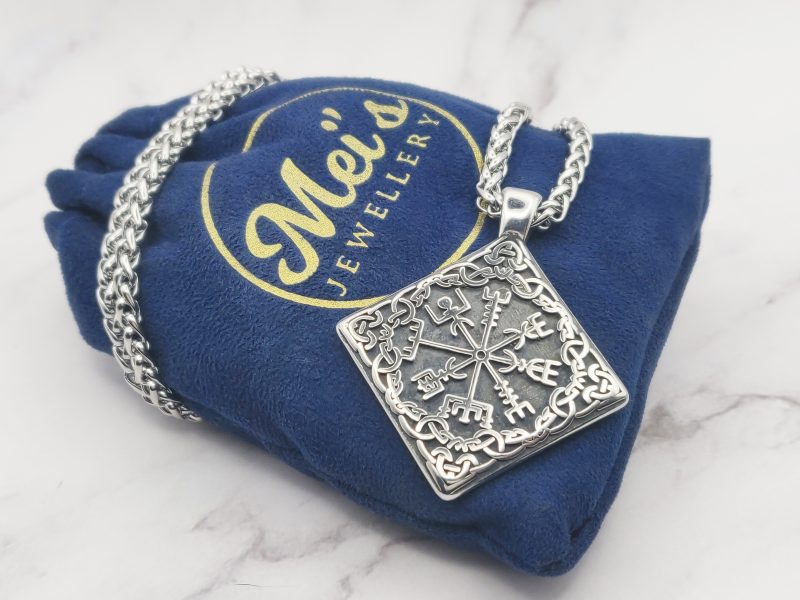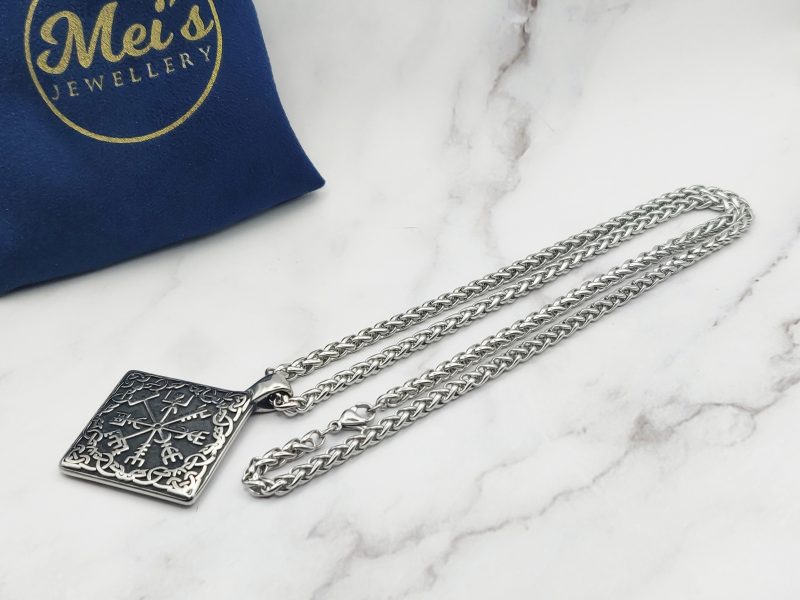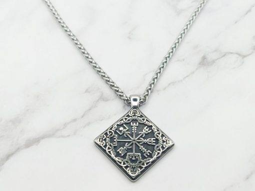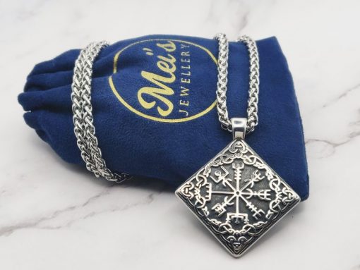Elke kant van de ketting heeft het symbool Vegvisir en je kan de ketting gemakkelijk om de nek doen doormiddel van de kreeftklauwsluiting.