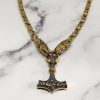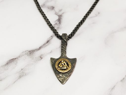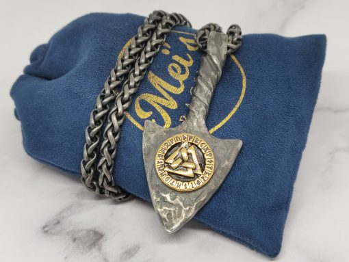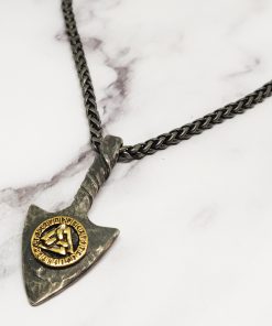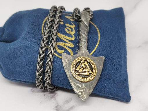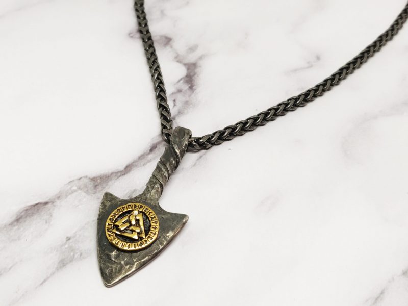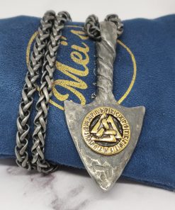Een stoere, tijdloze en duurzame ketting met symbolen uit de Oud-Noorse tijd, Valknut en runenschrift. Deze antieke viking ketting is van roestvrijstaal, ook wel 316L of Stainless Steel. De ketting kan je gemakkelijk om de nek doen met maat 70 cm en doormiddel van de kreeftklauwsluiting.
