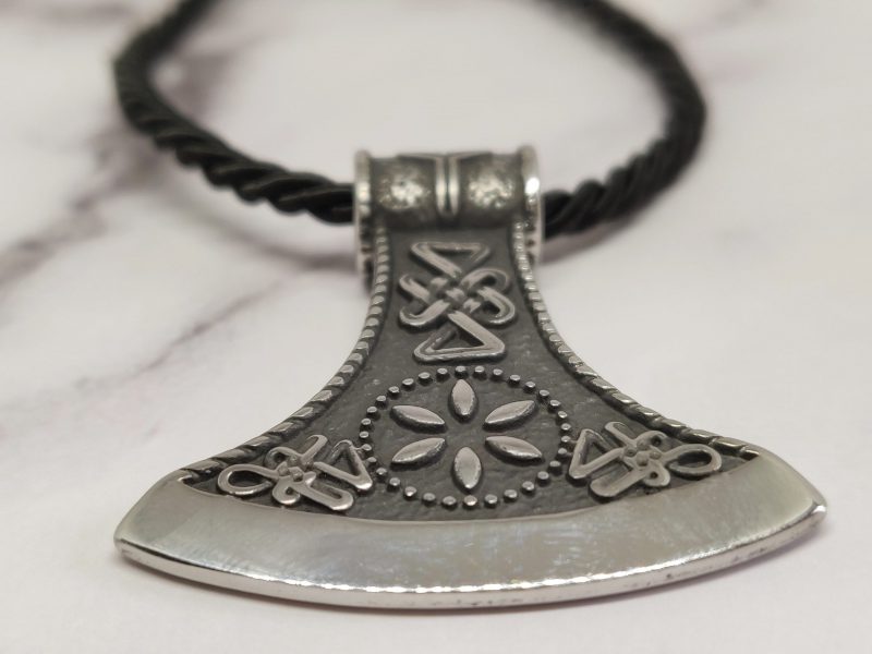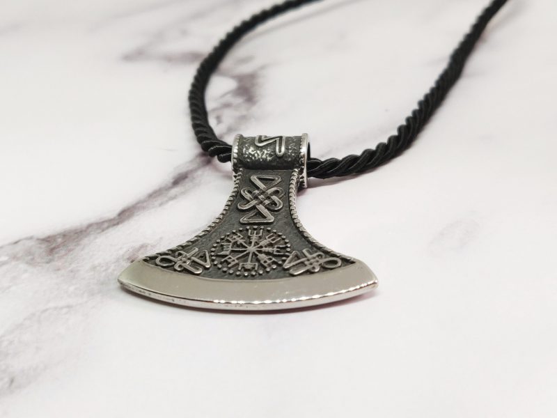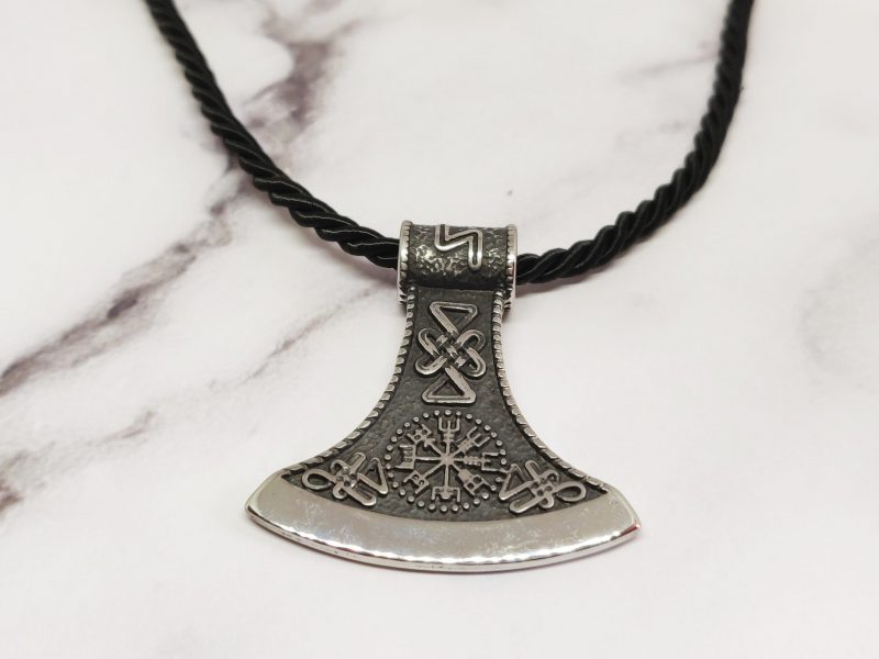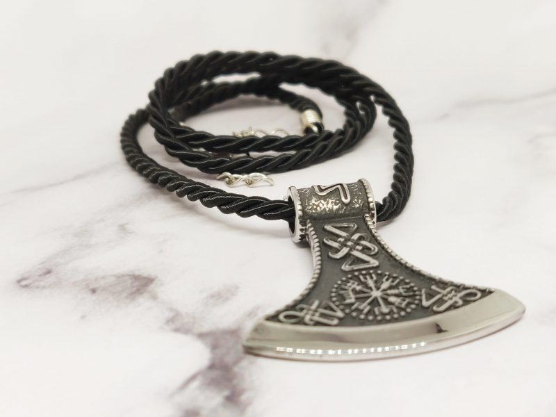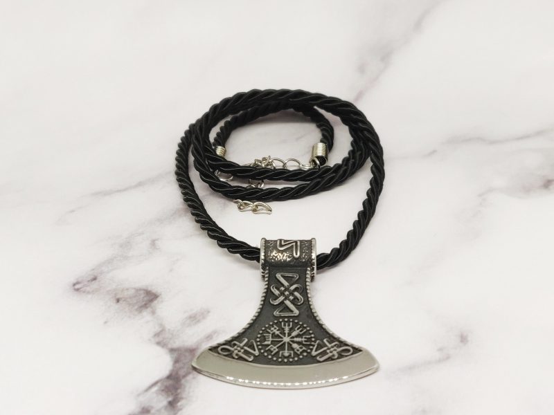 Mei’s Viking ketting | Viking’s Dane Axe | Stainless Steel – katoen | zilver – zwart