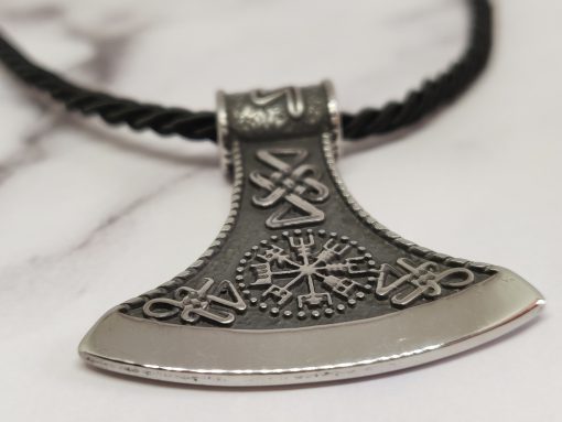 Een stoere, tijdloze en duurzame ketting van 316L roestvrij staal (RVS) en katoen in maat 53-58 cm met Deense bijl als hanger.