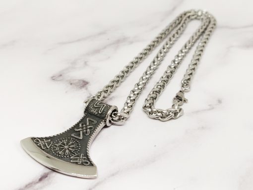 Deze antieke viking ketting is helemaal van 316L roestvrij staal (RVS) in maat 51 cm, de bijl pendel heeft een lengte van 4 cm en een breedte van 4 cm.
