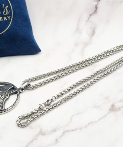 Een stoere en duurzame ketting met een krachtige wolf als hanger. Deze Viking-ketting is gemaakt van hoogwaardig 316L roestvrij staal (RVS), en verkrijgbaar in maat 60 cm. Dankzij de stevige kreeftklauwsluiting is de ketting eenvoudig om en af te doen. Het is meer dan alleen een accessoire — deze ketting draagt een symbolische betekenis en geeft je look een extra krachtige uitstraling.