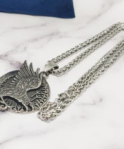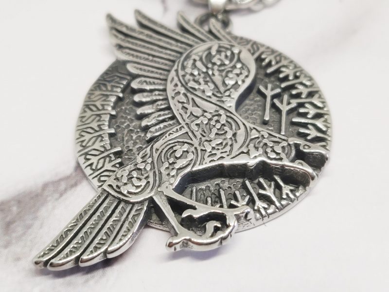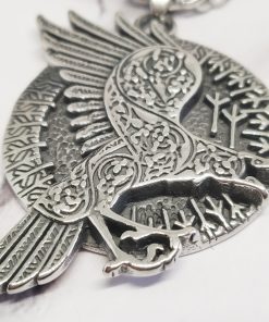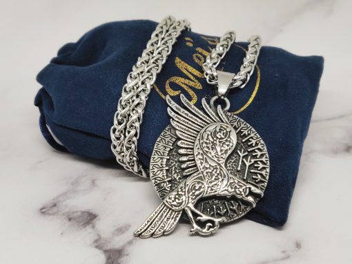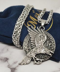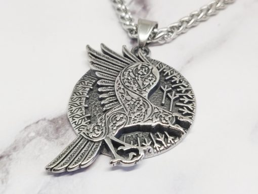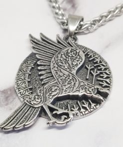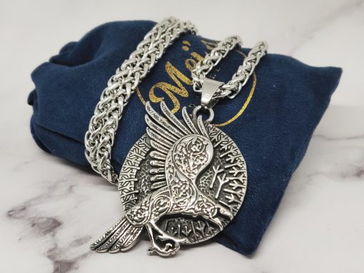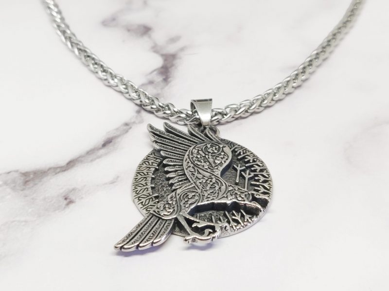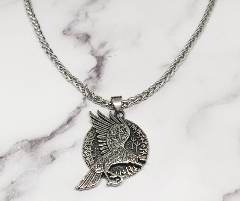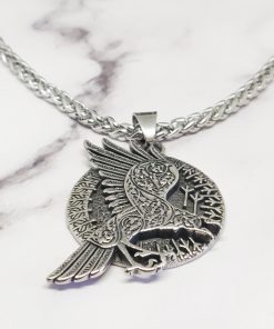 Een Viking ketting met een raaf-amulet voor mannen. Deze ketting is volledig van 316L Roestvrij staal, ook wel Stainless Steel gemaakt. Je kan deze ketting dragen met maat 50 cm en 70 cm. Daarnaast kan je de ketting makkelijk om je nek doen doormiddel van de kreeftklauw-sluiting.