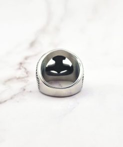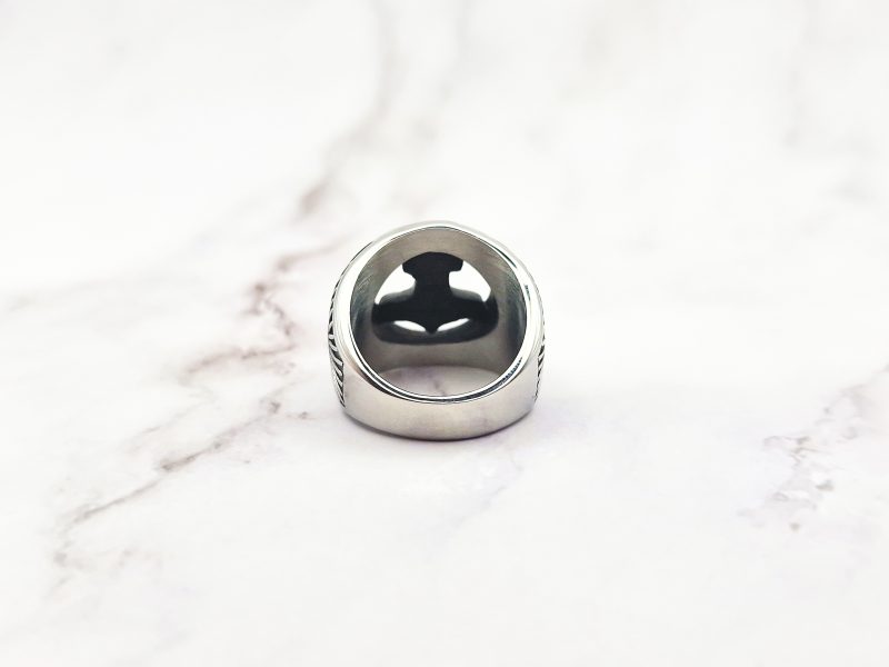 Roestvrij staal, ook wel bekend als chirurgisch staal, wordt niet dof en oxideert niet. Daarnaast is het hypoallergeen, dus geschikt voor alle huidtypen. Door deze ring te dragen geeft het jou de kracht geeft die jij nodig hebt. Tijd om wat mannelijke kracht en macht te introduceren bij je outfits.