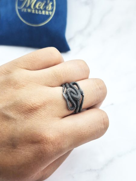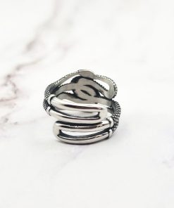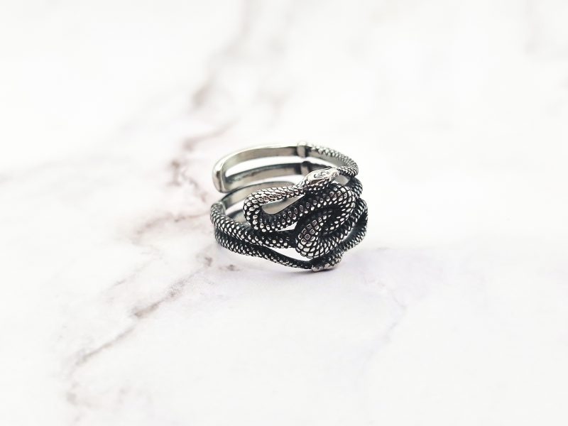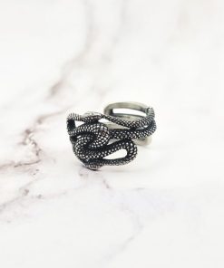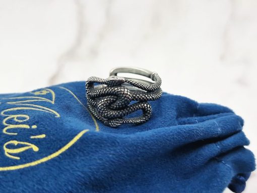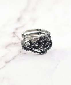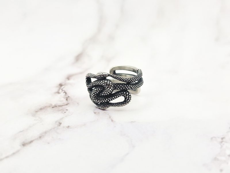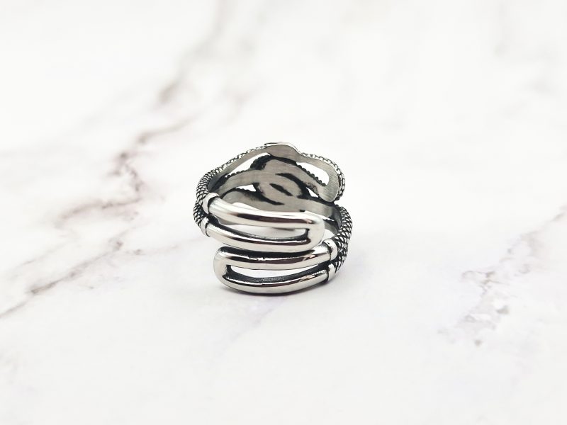 Een stoere en unieke Viking ring, omring door slangen. Deze ring kan je verstellen tot jouw ringmaat 55 t/m 59 mm. Niet alleen is deze ring mooi, maar het heeft daarnaast ook een speciale betekenis door de twee slangen. Het is vervaardigd uit roestvrij staal, waardoor het niet alleen sterk is maar ook duurzaam. Draag deze ring en jouw outfit is compleet.